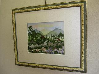 多可町在住の藤原三枝子さんの押し花作品を展示しています。